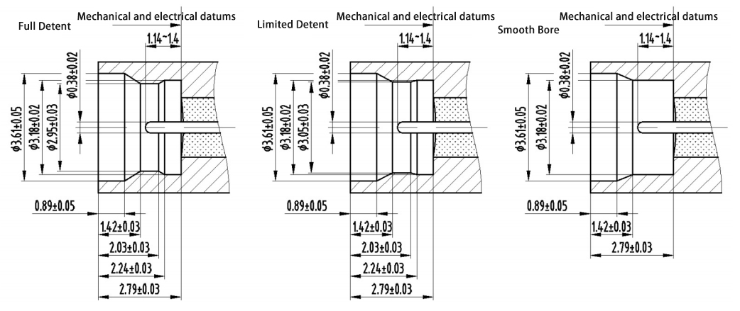 Ang SMP-J type air-selyo na RF coaxial connectors ay may tatlong mga form ng interface: buong pagtakas, kalahating pagtakas, at light hole. Kapag pinangalanan ang modelo, ang F ay nangangahulugang buong pagtakas, ang L ay nangangahulugang kalahati ng pagtakas, at ang S ay nangangahulugang light hole. Ang mga sukat ng interface ay nahahati sa karaniwang mga sukat ng interface at mga maikling sukat ng interface, pareho ang mga ito ay magkakaugnay sa mga plug ng uri ng SMP-K.