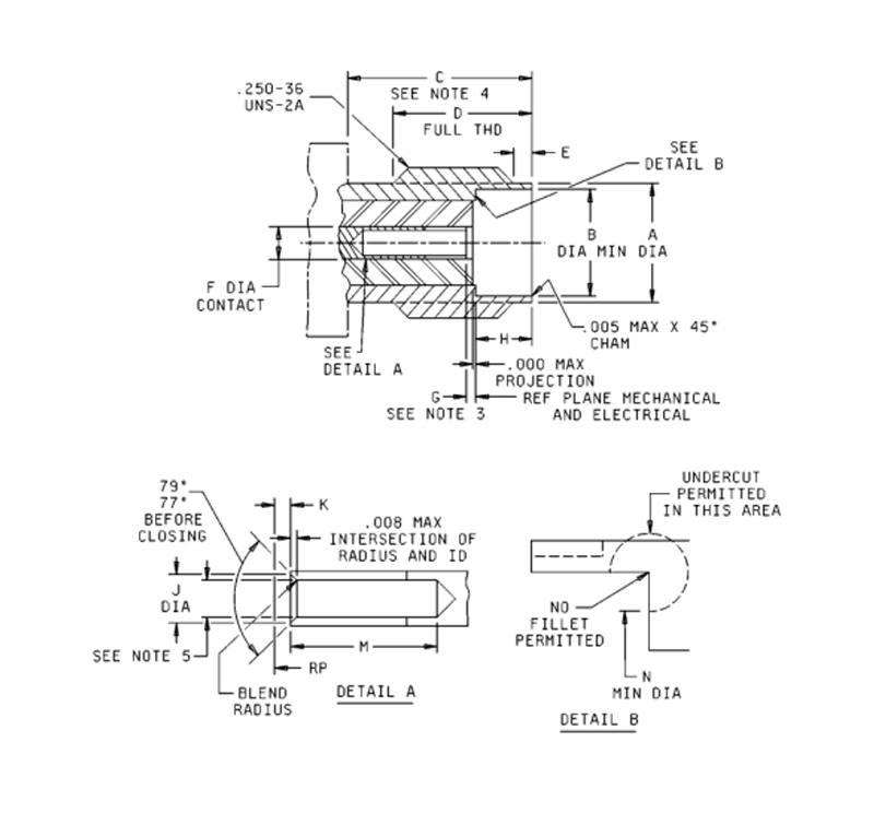 3. Nauna nang mga kwalipikadong bahagi gamit ang isang .030 pulgada (0.76) maximum na pag -urong ng contact ay hindi katanggap -tanggap para sa paggamit ng govemment. Ang pag -iingat ay dapat gamitin upang matukoy kung ang isang disenyo ng pag -urong ng .030 ay ginagamit sa panahon ng pagpapanatili at kapalit ng bahagi.